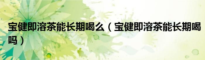 大家好,小生来为大家讲解下。宝健即溶茶能长期喝么,宝健即溶茶能长期喝吗很多人还不知道,现在让我们一起来看看吧!
