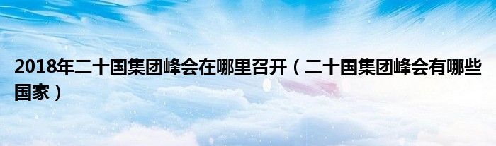大家好,小生来为大家讲解下。2018年二十国集团峰会在哪里召开,二十国集团峰会有哪些国家很多人还不知道,现在让我们一起来看看吧!
