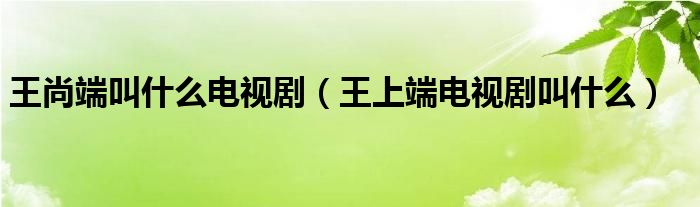 大家好,小生来为大家讲解下。王尚端叫什么电视剧,王上端电视剧叫什么很多人还不知道,现在让我们一起来看看吧!