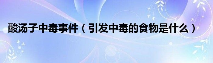 大家好,伊人来为大家解答以上问题。酸汤子中毒事件,引发中毒的食物是什么很多人还不知道,现在让我们一起来看看吧!