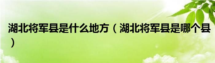 大家好,小生来为大家讲解下。湖北将军县是什么地方,湖北将军县是哪个县很多人还不知道,现在让我们一起来看看吧!