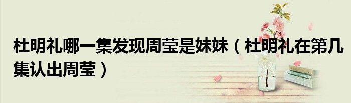 大家好,小生来为大家讲解下。杜明礼哪一集发现周莹是妹妹,杜明礼在第几集认出周莹很多人还不知道,现在让我们一起来看看吧!