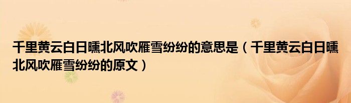 大家好,伊人来为大家解答以上问题。千里黄云白日曛北风吹雁雪纷纷的意思是,千里黄云白日曛北风吹雁雪纷纷的原文很多人还不知道,现在让我们一起来看看吧!