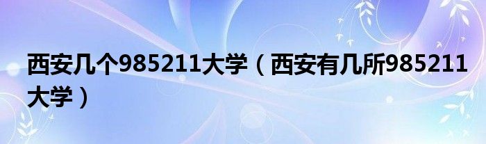大家好,小生来为大家讲解下。西安几个985211大学,西安有几所985211大学很多人还不知道,现在让我们一起来看看吧!