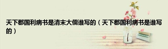 大家好,小生来为大家讲解下。天下郡国利病书是清末大儒谁写的,天下郡国利病书是谁写的很多人还不知道,现在让我们一起来看看吧!