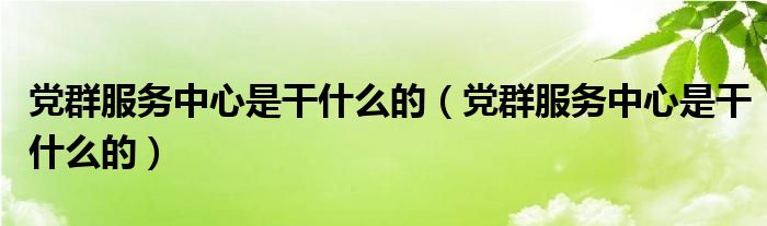 大家好,小生来为大家讲解下。党群服务中心是干什么的,党群服务中心是干什么的很多人还不知道,现在让我们一起来看看吧!