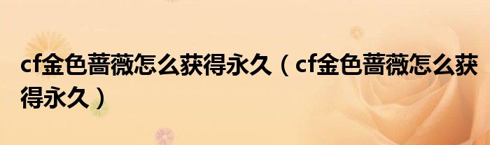 大家好,小生来为大家讲解下。cf金色蔷薇怎么获得永久,cf金色蔷薇怎么获得永久很多人还不知道,现在让我们一起来看看吧!