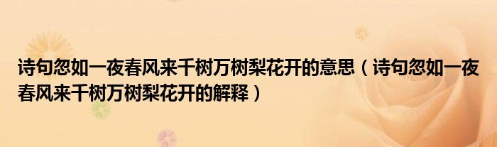 大家好,伊人来为大家解答以上问题。诗句忽如一夜春风来千树万树梨花开的意思,诗句忽如一夜春风来千树万树梨花开的解释很多人还不知道,现在让我们一起来看看吧!