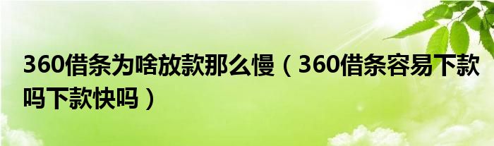 大家好,小生来为大家讲解下。360借条为啥放款那么慢,360借条容易下款吗下款快吗很多人还不知道,现在让我们一起来看看吧!