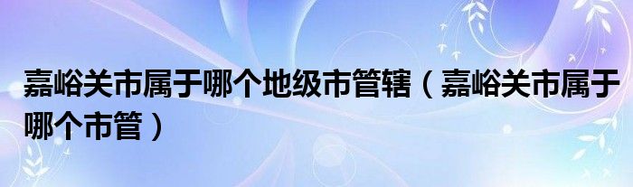大家好,小生来为大家讲解下。嘉峪关市属于哪个地级市管辖,嘉峪关市属于哪个市管很多人还不知道,现在让我们一起来看看吧!
