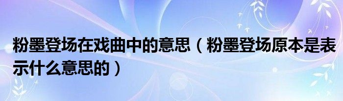 大家好,伊人来为大家解答以上问题。粉墨登场在戏曲中的意思,粉墨登场原本是表示什么意思的很多人还不知道,现在让我们一起来看看吧!