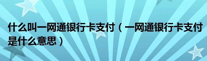 大家好,小生来为大家讲解下。什么叫一网通银行卡支付,一网通银行卡支付是什么意思很多人还不知道,现在让我们一起来看看吧!
