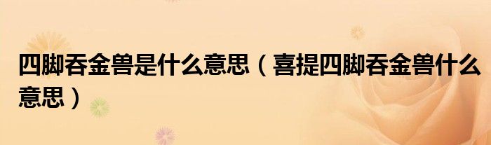 大家好,小生来为大家讲解下。四脚吞金兽是什么意思,喜提四脚吞金兽什么意思很多人还不知道,现在让我们一起来看看吧!