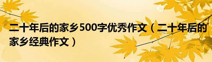 大家好,伊人来为大家解答以上问题。二十年后的家乡500字优秀作文,二十年后的家乡经典作文很多人还不知道,现在让我们一起来看看吧!