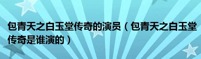 大家好,伊人来为大家解答以上问题。包青天之白玉堂传奇的演员,包青天之白玉堂传奇是谁演的很多人还不知道,现在让我们一起来看看吧!