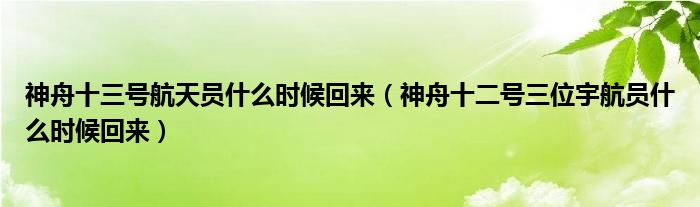 大家好,伊人来为大家解答以上问题。神舟十三号航天员什么时候回来,神舟十二号三位宇航员什么时候回来很多人还不知道,现在让我们一起来看看吧!