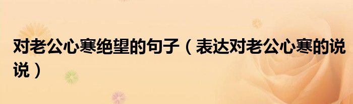 大家好,伊人来为大家解答以上问题。对老公心寒绝望的句子,表达对老公心寒的说说很多人还不知道,现在让我们一起来看看吧!