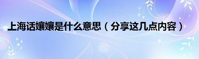 大家好,伊人来为大家解答以上问题。上海话孃孃是什么意思,分享这几点内容很多人还不知道,现在让我们一起来看看吧!