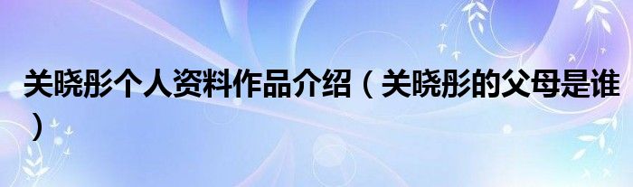 大家好,伊人来为大家解答以上问题。关晓彤个人资料作品介绍,关晓彤的父母是谁很多人还不知道,现在让我们一起来看看吧!