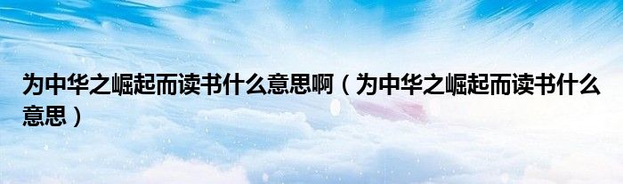 大家好,小育来为大家讲解下。为中华之崛起而读书什么意思啊,为中华之崛起而读书什么意思很多人还不知道,现在让我们一起来看看吧!
