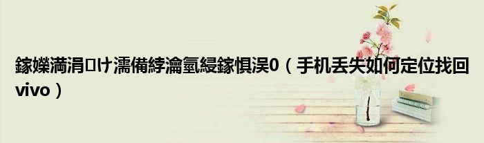 大家好,小育来为大家讲解下。鎵嬫満涓㈠け濡備綍瀹氫綅鎵惧洖0,手机丢失如何定位找回vivo很多人还不知道,现在让我们一起来看看吧!
