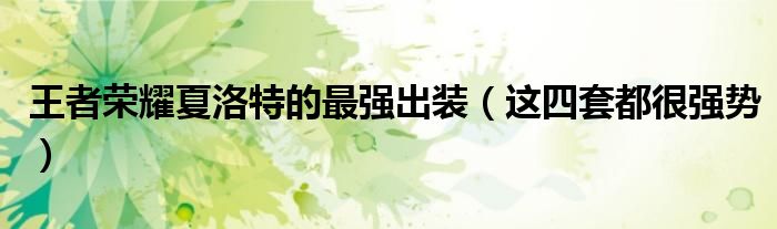 大家好,伊人来为大家解答以上问题。王者荣耀夏洛特的最强出装,这四套都很强势很多人还不知道,现在让我们一起来看看吧!