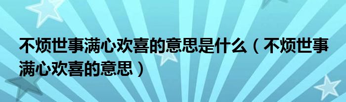 大家好,小育来为大家讲解下。不烦世事满心欢喜的意思是什么,不烦世事 满心欢喜的意思很多人还不知道,现在让我们一起来看看吧!