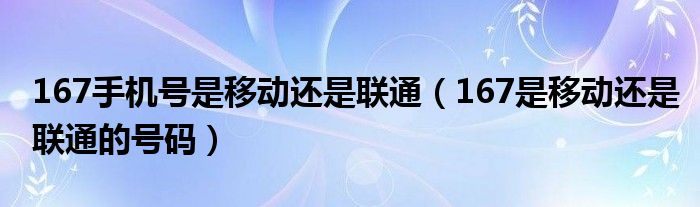 大家好,小育来为大家讲解下。167手机号是移动还是联通,167是移动还是联通的号码很多人还不知道,现在让我们一起来看看吧!