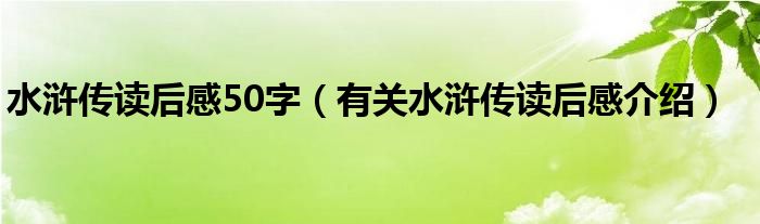 大家好,伊人来为大家解答以上问题。水浒传读后感50字,有关水浒传读后感介绍很多人还不知道,现在让我们一起来看看吧!