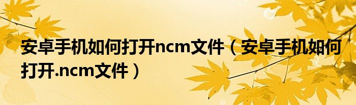 大家好,小育来为大家讲解下。安卓手机如何打开ncm文件,安卓手机如何打开.ncm文件很多人还不知道,现在让我们一起来看看吧!