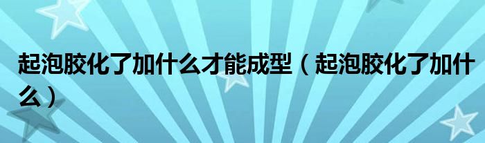 大家好,小育来为大家讲解下。起泡胶化了加什么才能成型,起泡胶化了加什么很多人还不知道,现在让我们一起来看看吧!