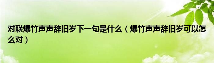 大家好,伊人来为大家解答以上问题。对联爆竹声声辞旧岁下一句是什么,爆竹声声辞旧岁可以怎么对很多人还不知道,现在让我们一起来看看吧!