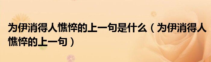 大家好,小育来为大家讲解下。为伊消得人憔悴的上一句是什么,为伊消得人憔悴的上一句很多人还不知道,现在让我们一起来看看吧!