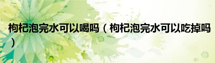 大家好,小育来为大家讲解下。枸杞泡完水可以喝吗,枸杞泡完水可以吃掉吗很多人还不知道,现在让我们一起来看看吧!
