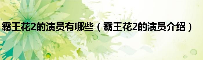 大家好,伊人来为大家解答以上问题。霸王花2的演员有哪些,霸王花2的演员介绍很多人还不知道,现在让我们一起来看看吧!