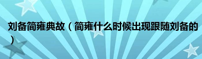 大家好,小育来为大家讲解下。刘备简雍典故,简雍什么时候出现跟随刘备的很多人还不知道,现在让我们一起来看看吧!