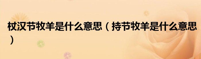 大家好,小育来为大家讲解下。杖汉节牧羊是什么意思,持节牧羊是什么意思很多人还不知道,现在让我们一起来看看吧!