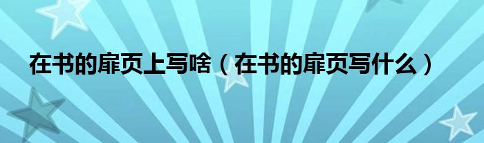 大家好,小育来为大家讲解下。在书的扉页上写啥,在书的扉页写什么很多人还不知道,现在让我们一起来看看吧!