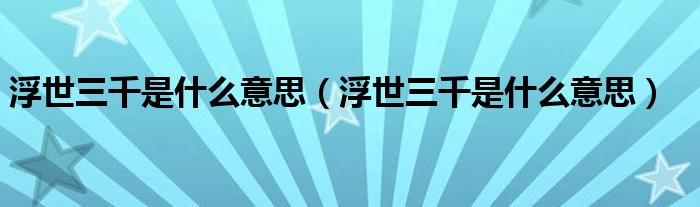 大家好,小育来为大家讲解下。浮世三千是什么意思,浮世三千是什么意思很多人还不知道,现在让我们一起来看看吧!