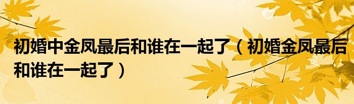大家好,小育来为大家讲解下。初婚中金凤最后和谁在一起了,初婚金凤最后和谁在一起了很多人还不知道,现在让我们一起来看看吧!