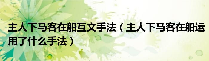 大家好,小育来为大家讲解下。主人下马客在船互文手法,主人下马客在船运用了什么手法很多人还不知道,现在让我们一起来看看吧!