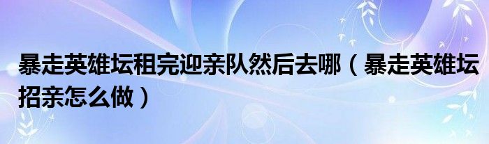 大家好,小育来为大家讲解下。暴走英雄坛租完迎亲队然后去哪,暴走英雄坛招亲怎么做很多人还不知道,现在让我们一起来看看吧!