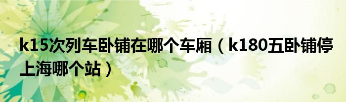 大家好,小育来为大家讲解下。k15次列车卧铺在哪个车厢,k180五卧铺停上海哪个站很多人还不知道,现在让我们一起来看看吧!