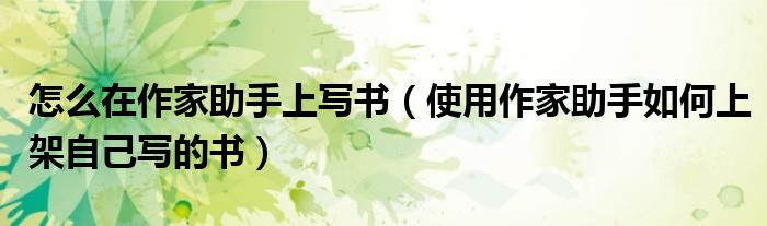 大家好,小育来为大家讲解下。怎么在作家助手上写书,使用作家助手如何上架自己写的书很多人还不知道,现在让我们一起来看看吧!