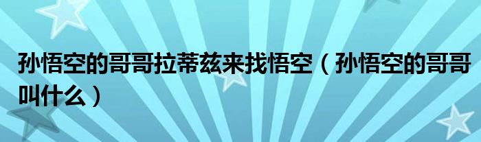 大家好,小育来为大家讲解下。孙悟空的哥哥拉蒂兹来找悟空,孙悟空的哥哥叫什么很多人还不知道,现在让我们一起来看看吧!