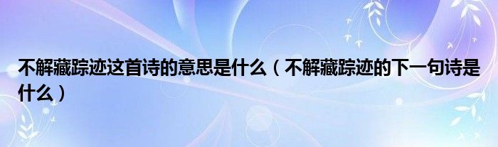 大家好,小育来为大家讲解下。不解藏踪迹这首诗的意思是什么,不解藏踪迹的下一句诗是什么很多人还不知道,现在让我们一起来看看吧!