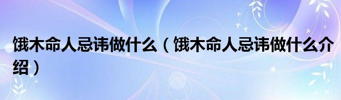 大家好,伊人来为大家解答以上问题。饿木命人忌讳做什么,饿木命人忌讳做什么介绍很多人还不知道,现在让我们一起来看看吧!