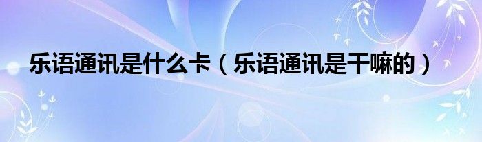 大家好,小育来为大家讲解下。乐语通讯是什么卡,乐语通讯是干嘛的很多人还不知道,现在让我们一起来看看吧!