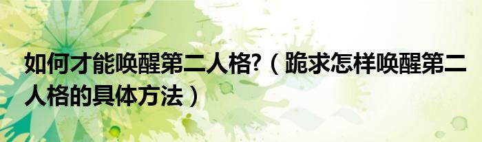 大家好,小育来为大家讲解下。如何才能唤醒第二人格?,跪求怎样唤醒第二人格的具体方法很多人还不知道,现在让我们一起来看看吧!