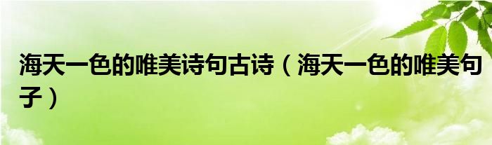 大家好,小育来为大家讲解下。海天一色的唯美诗句古诗,海天一色的唯美句子很多人还不知道,现在让我们一起来看看吧!